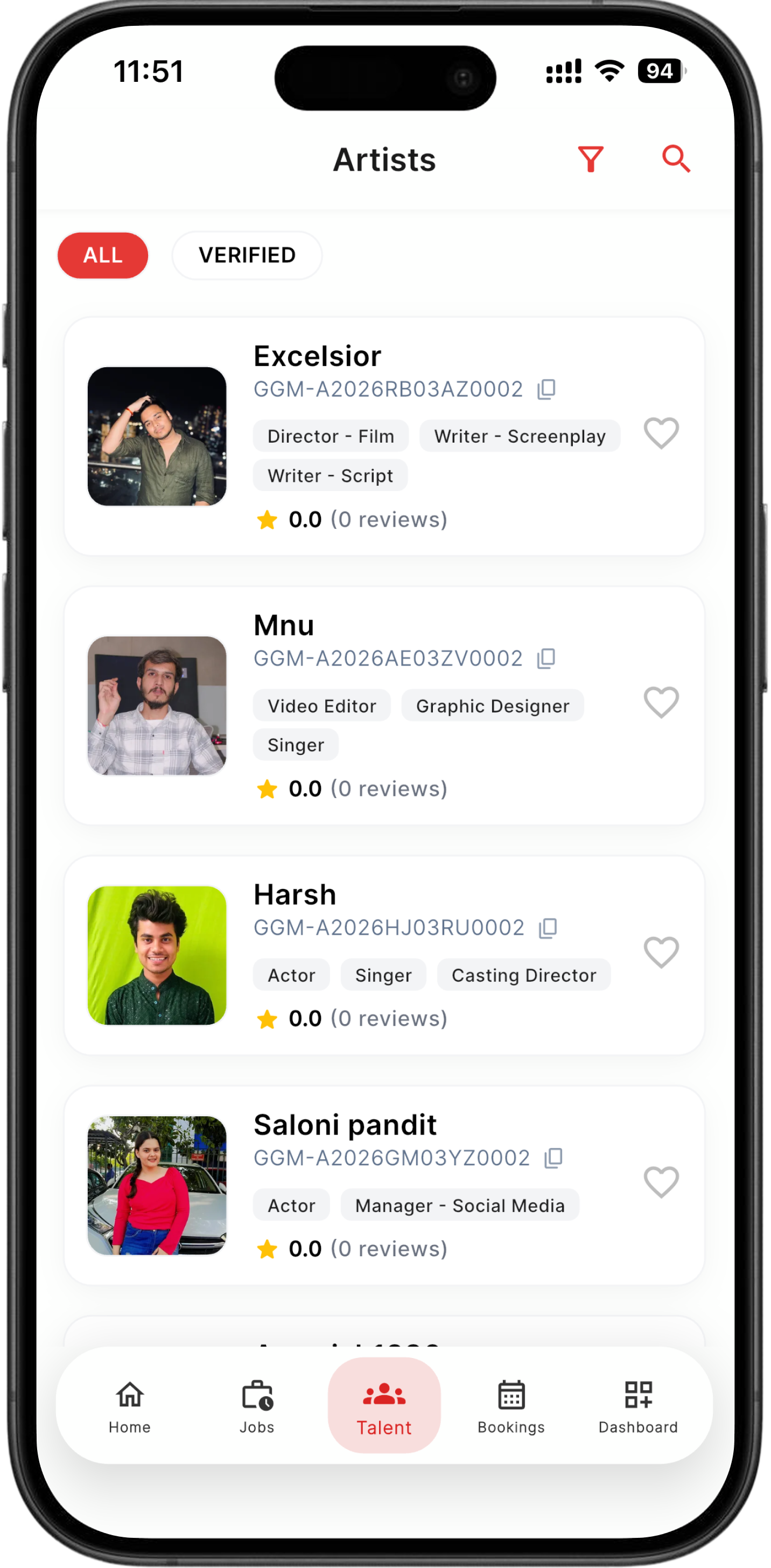 Agencies, brands, and production houses can discover, filter, and hire the right artists by posting jobs and using intelligent talent search.