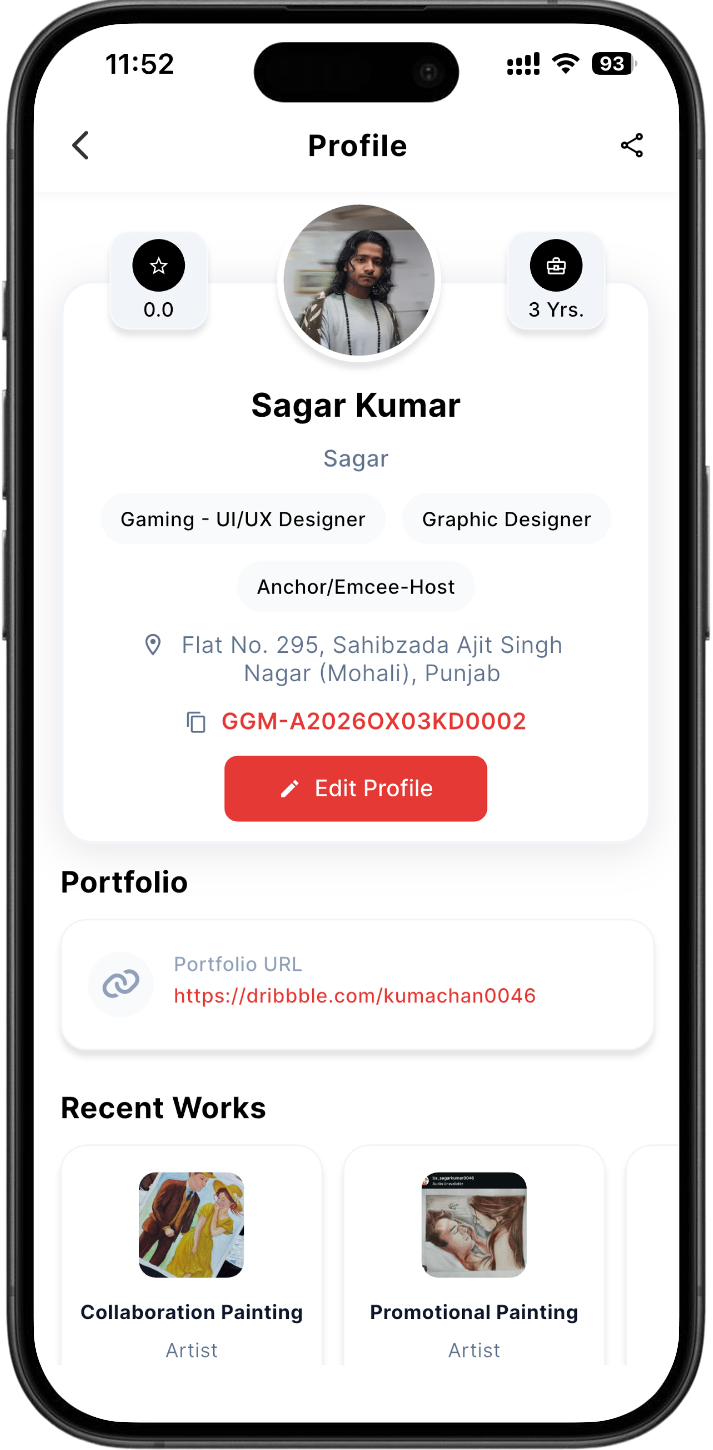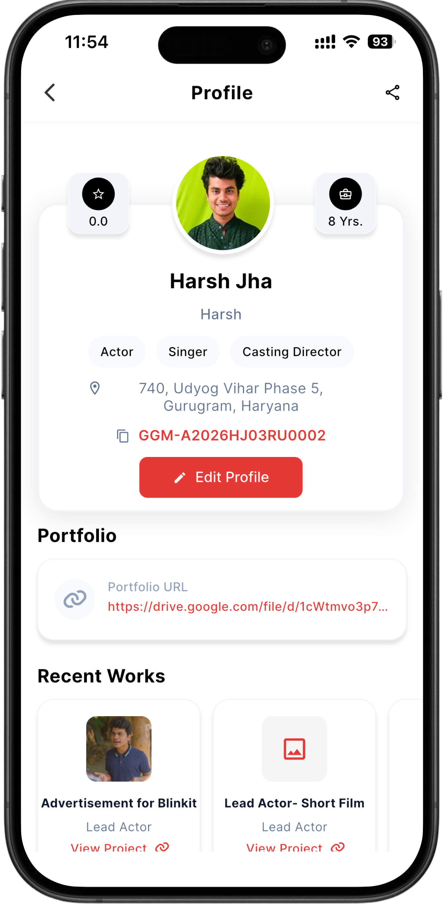 Artists create detailed profiles showcasing talent, skills, and experience, helping them get discovered by brands, agencies, and production houses for projects.